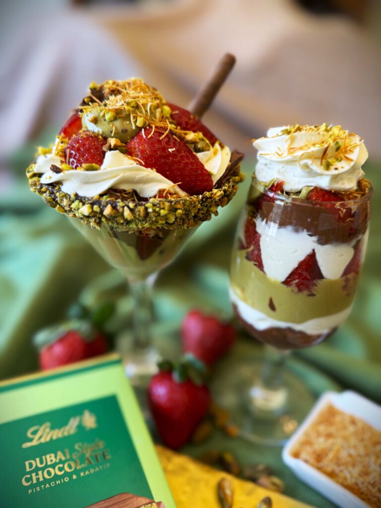 And that is what I’m going to share with you now, ways to utilize these flavors and ingredients at home, with a Dubai-style Chocolate Strawberry Parfait. I chose to layer the traditional Dubai-style ingredients, along with fresh strawberries and mascarpone whipped cream, to cut down on the richness and make it an easier-to-enjoy dessert.