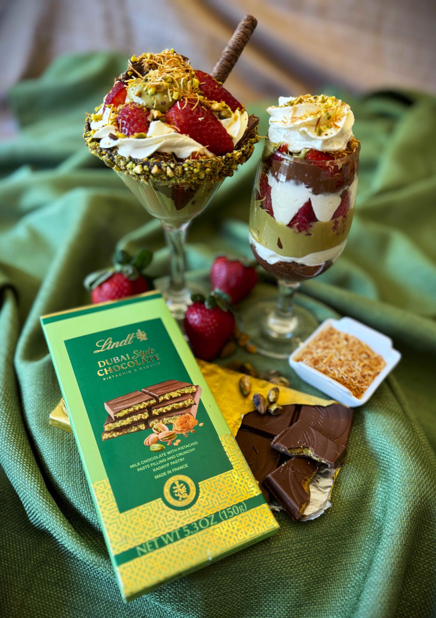 In 2021, a chocolatier in Dubai had a pregnancy craving, and she worked with another chef to bring her idea to life. They created a unique chocolate bar by combining traditional ingredients from their Middle Eastern Cuisine: generous amounts of pistachio cream mixed with crunchy kataifi, tucked inside a rich milk chocolate bar. (More about what kataifi is later.) Local customers loved them, but it wasn’t until early 2024 that their creation went viral, after being featured in a popular TikTok video. Overnight, people everywhere were clamoring for bars of their own to enjoy, and the fact that the bars were scarce and expensive only added to the craze.